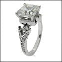 Asscher cut cubic zirconia engagement ring. This elegant cz engagement ring is showcasing a 2.5 carat AAA high quality, IGI certified Asscher cut center stone. The Asscher cut cubic zirconia is set in prongs setting. The gallery is showcasing a traditional Irish symbol of hands holding heart. The heart and hands represent love and loyalty. The crown like sides of the shank are set with small round stones in pave setting.The cubic zirconia asscher cut engagement ring is made in 14k solid white gold. "14K" stamp is inscribed. The 14k white gold has a Rhodium coating as well.