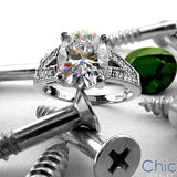 Engagement Oval 3 Ct Diamond CZ Center Pave Cubic Zirconia Sides 14K White Gold Ring