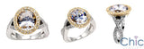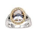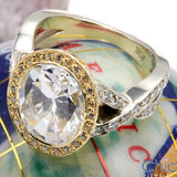 Oval 5 Ct Cubic Zirconia Two Tone Gold Halo Pave Cz Engagement Ring