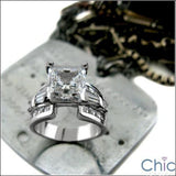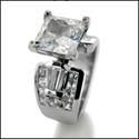 Cubic Zirconia Princess 2 Ct Center Wide Channel Set Sides Platinum Engagement Ring