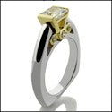 Engagement Princess .75 Center Two Tone Channel Euro Shank Cubic Zirconia Cz Ring