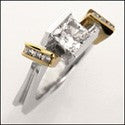 High Quality Cubic Zirconia Princess Cut Engagement Ring Euro Shank Two Tone 14K Gold