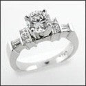 A dazzling engagement ring with a round one carat cubic zirconia in Tiffany style setting surrounded with princess and baguette cut cubic zirconia in channel settings on the sides.