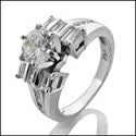 Engagement Round 1 Ct Center Baguettes Ct small Round Cubic Zirconia Cz Ring