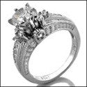 A superb eye-appealing engagement ring with high polished engraved shank, with round cut diamond color cubic zirconia center stone set in 6 prong tiffany setting, and surrounded with alot of gorgeous round cut cubic zirconia stones in pave share prong setting on the sides.