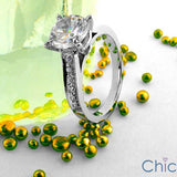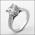 Engagement Ring Cubic Zirconia 2 Carat Round Center Pave Band 14 K White Gold
