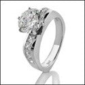 An eye catching , elegant 2.0 carat round diamond quality cubic zirconia stone set in 6 prong, Euro shaped shank set with princess cut stones in channel setting.
