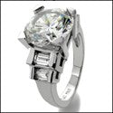 Round 4 Carat CZ Center Channel Baguettes 14k White Gold Engagament Ring