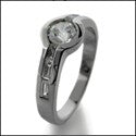 Engagement Round .50 Ct Baguettes Low Set Cubic Zirconia Cz Ring