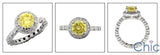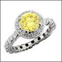 A sparkling engagement ring with high polished shank and a high quality round canary cubic zirconia in prong setting surrounded by round cubic zirconias in pave setting and round high quality diamond cubic zirconias on the sides in channel setting.