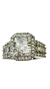 High Quality cubic zirconia Radiant Cut Engagement Ring with baguettes and round stones 14k White Gold