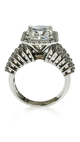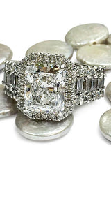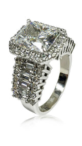 High Quality cubic zirconia Radiant Cut Platinum Engagement Ring with baguette round stones