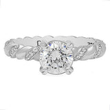 High Quality Cubic Zirconia Round 1 carat Engagement ring Rope Shank 14K White Gold