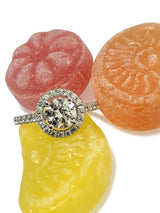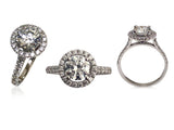 Highest Quality 1 carat Round Cubic Zirconia Halo style engagement ring 2mm shank