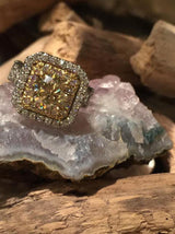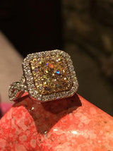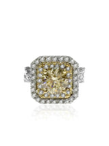 Light Canary 1.25 Carat Round Cubic Zirconia Two tone 14K Gold Double Halo Engagement Ring