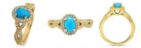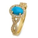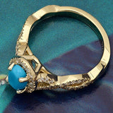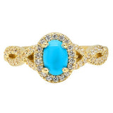 Oval 1 Carat Turquoise Center In Pave Set Halo 14K Yellow Gold Ring.