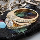 Oval High Quality Cubic Zirconia Yellow Gold Pave Ring