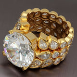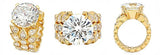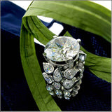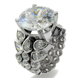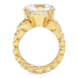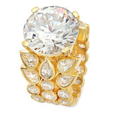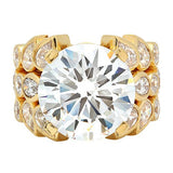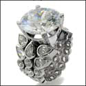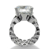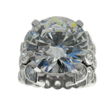 Luxury show stopper - engagement ring. This large 10 carat round brilliant cut cubic zirconia has AAA high quality and is IGI certified. The brillinace and depth of our cubic zirconia is incredible. It is set in prongs and the prongs are jeweled with small pave set stones. The shank is heavy and solid. The eternity style shank has a combination of pear shaped cz and round stones in channel setting. The width of the shank at the widest is around 14mm.