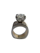 Elevate your proposal with this stunning engagement ring, featuring a breathtaking 6-carat oval cubic zirconia center stone, certified AAA by IGI. The ring showcases a sophisticated two-tone design, with a lustrous yellow gold shank complemented by sleek 14k white gold side bands.