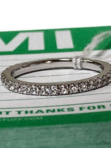 2 MM Wide Eternity Wedding band with pave set stones all around the band. The cz round stones are AAA highest quality IGI certified. This dainty eternity band is great for stacking and mix and matching with other engagement rings.
