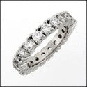 A striking eternity band with a high quality round diamond cubic zirconia in prong setting.