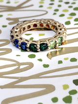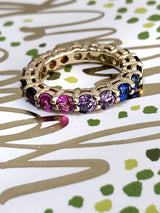 Rainbow colored Cubic Zirconia Eternity Wedding Band 14k