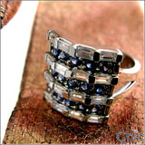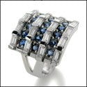 Unusual design set with AAA high quality round sapphire color stones in prong and baguettes in channel combination. Split shank