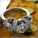 Marvelous ring set with 3 AAA high quality cubic zirconia round stones in channel setting surrounded with pave set stones on the side's & on the band.