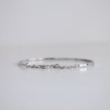 This dainty bangle bracelet is crafted in 14k white gold and features a delicate butterfly detail, adding a touch of elegance. It boasts 0.55 TCW of high-quality lab-grown diamonds with E color and VS1 clarity, set in a pave style. The adjustable link lock at the bottom ensures a perfect fit.