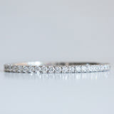 This stunning 7-inch flexible bangle tennis bracelet features 28 round lab-grown diamonds, each 3.8 mm in diameter, with exceptional E color and VVS clarity. The diamonds are securely set in prong settings and are showcased halfway around the bracelet, creating a seamless and elegant line of sparkle. Crafted from durable 14K white gold, this bracelet exudes a luxurious shine that complements both formal and casual looks. The bracelet also includes a secure lock for added peace of mind, ensuring both style and practicality for everyday wear. A perfect blend of elegance, sustainability, and durability.
