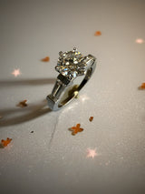 Flanking the center diamond are tapered lab-grown diamond baguettes, expertly channel set into the shoulders. Their clean geometry enhances the center stone while adding architectural balance and sophistication. The streamlined profile sits close to the finger, making this ring both graceful and practical.