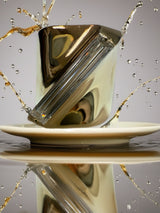 The architectural gold form measures 25mm diagonally and 21mm at its widest point, acting as a polished canvas for the diamond’s sleek geometry. The stone is secured in a minimalist single-prong setting, allowing maximum light exposure and emphasizing its clean lines and striking length.