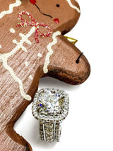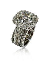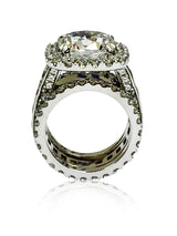6 Carat Cubic Zirconia Rounded Cushion Halo Style Engagement Ring Double Eternity Bands 14K White Gold