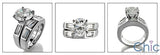 Elegant matching rings, set with AAA quality cubic zirconia round center stone in 4 prong setting, sides have channel set baguettes.