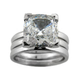 Elegant matching wedding set topped with AAA high quality 3.0 square cushion cut in V prong tiffany setting.Each band is 2.5mm in width. Double bands.