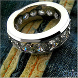 Eye catching slick men's band set with AAA high quality round CZ's in prong setting. Heavy chunky shank. Round stones are set in channel prong setting.