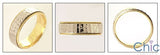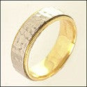 A unique high polished wedding band with engraved yellow gold on the sides and white gold high polished texture on the center.