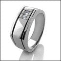 Mens 2 Channel Baguttes in Channel 8.5MM Wide Cubic Zirconia CZ Wedding Band