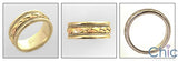 A exquisite high polished two tone wedding band with a tri-colored braded engraving on the center and white engravings on the sides.