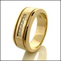 Mens 8mm Princess Channel Set Cubic Zirconia CZ Wedding Band