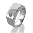 An elegant mens ring with a heavy 9.0 mm wide shank and a AAA quality round cubic zirconia stone burnished.