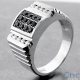 Mens Round Black Stons in Channel Pave Cubic Zirconia CZ Wedding Band