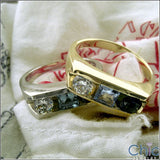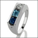 Slick men’s ring set with AAA quality princess cut center stone & round on the sides in channel setting.
