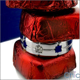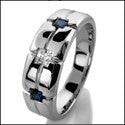 7mm wide masculine band with burnished set diamond color & sapphire color quality cubic zirconia princess cut stones