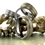 A exceptional titanium wedding band with thin stripes to give an elegant look.