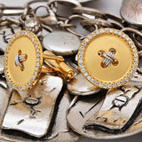 Two Tone Gold Button Cufflinks with Diamonds