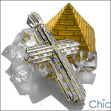 Two Tone Gold Cross Canary Ct Diamond Color CZs