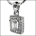 Exquisite pendent, set with 0.50 AAA high quality emerald cut center stone, surrounded by pave set round stones on the sides.