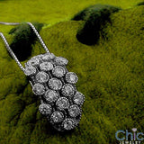 An elegant pendant with round stones set in bezel. 18 inch 14k white gold chain included.