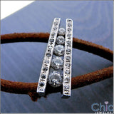 Modern 14k white gold pendant with channel set AAA high quality floating stones. Pave set stones on the bars.